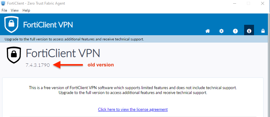 That means the FortiClient 7.4.3 has to be reinstalled if you are running an older build number as in this example: